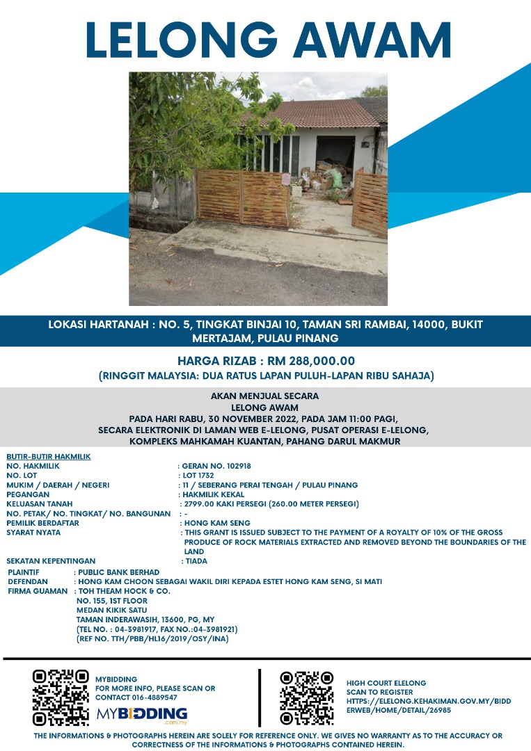 RM290,000 | Nov 22, 2022 | Tue