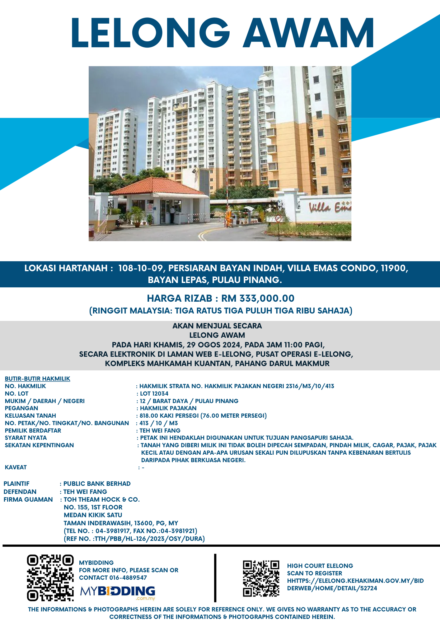 RM333,000 | Aug 29, 2024 | Thu