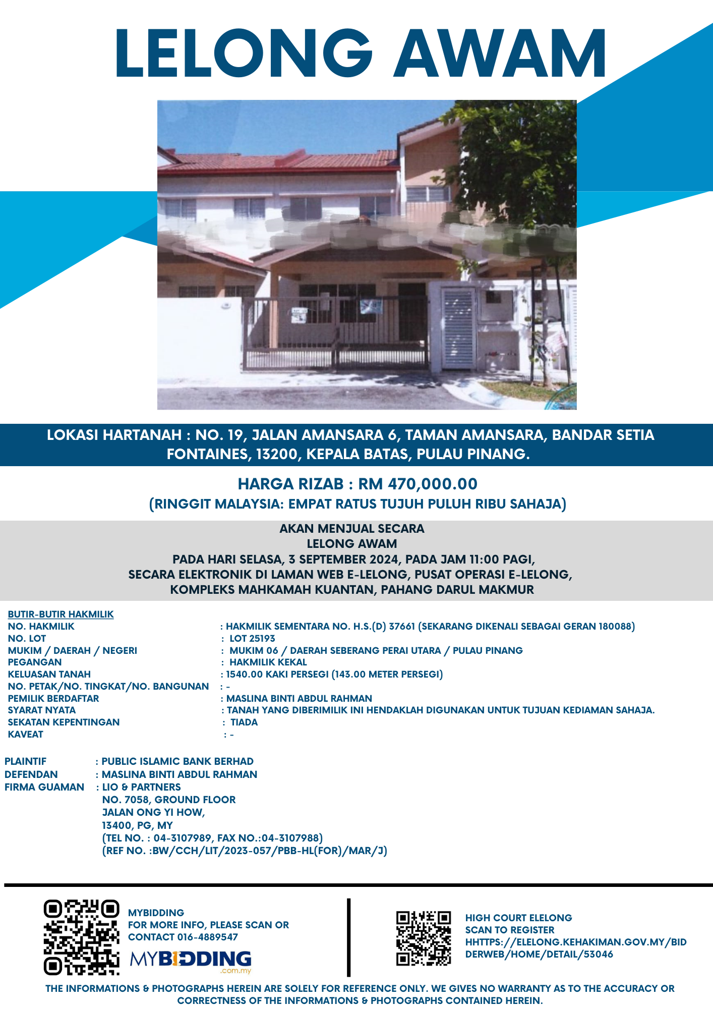 RM470,000 | Sep 03, 2024 | Tue