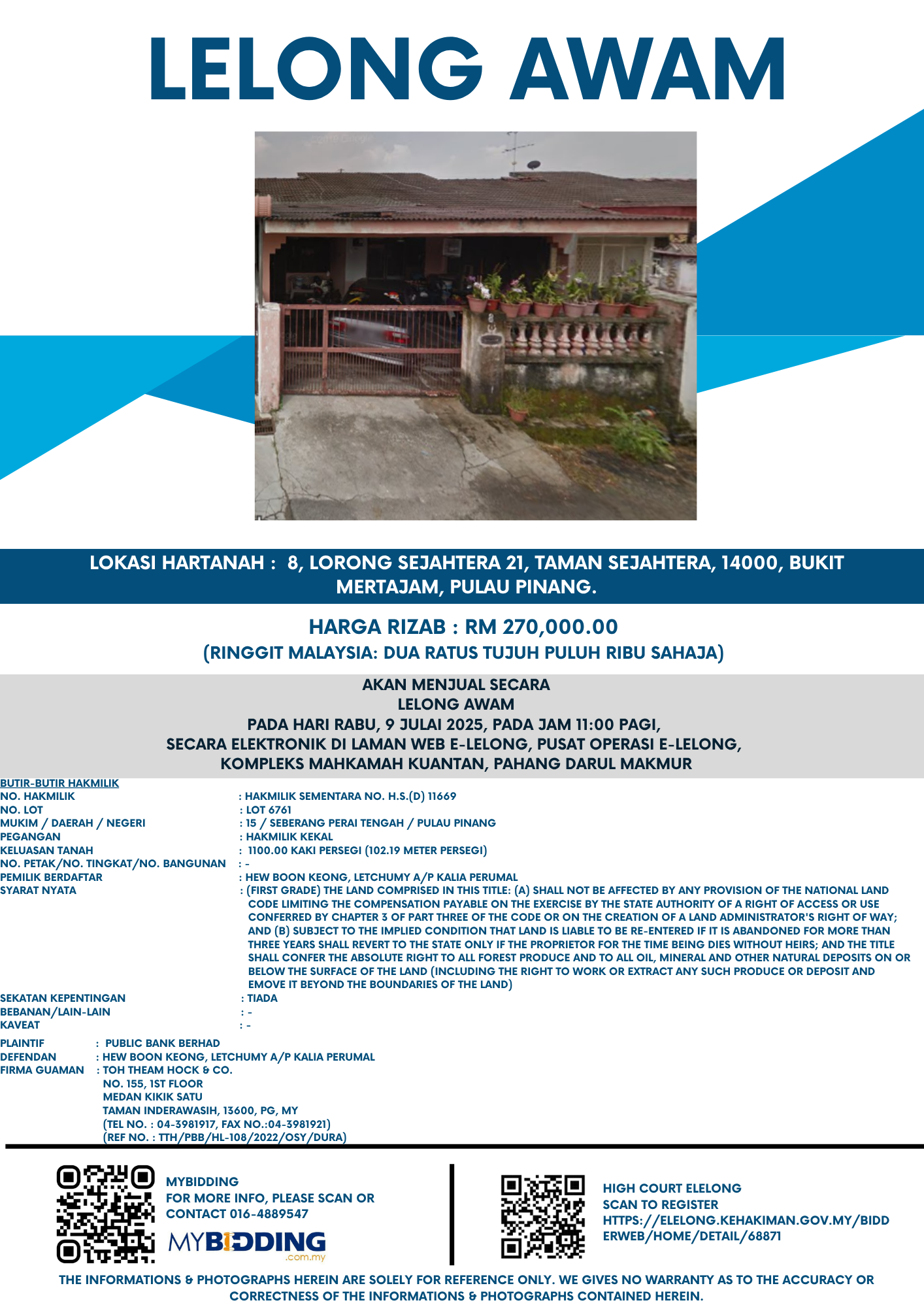 RM270,000 | Jul 09, 2025 | Wed