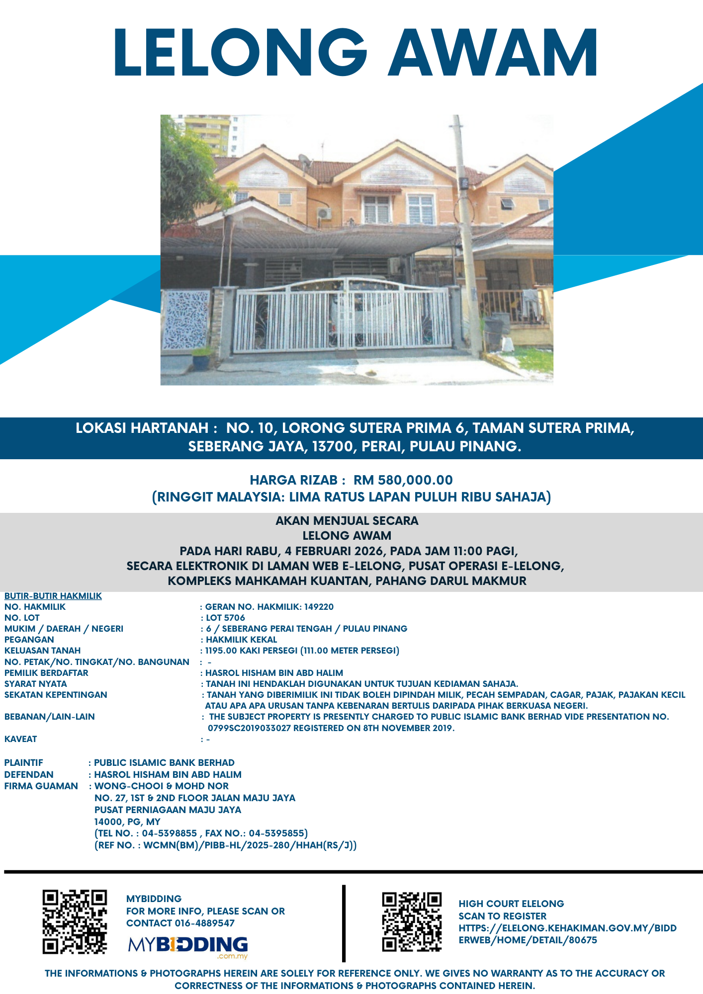 RM580,000 | Feb 04, 2026 | Wed